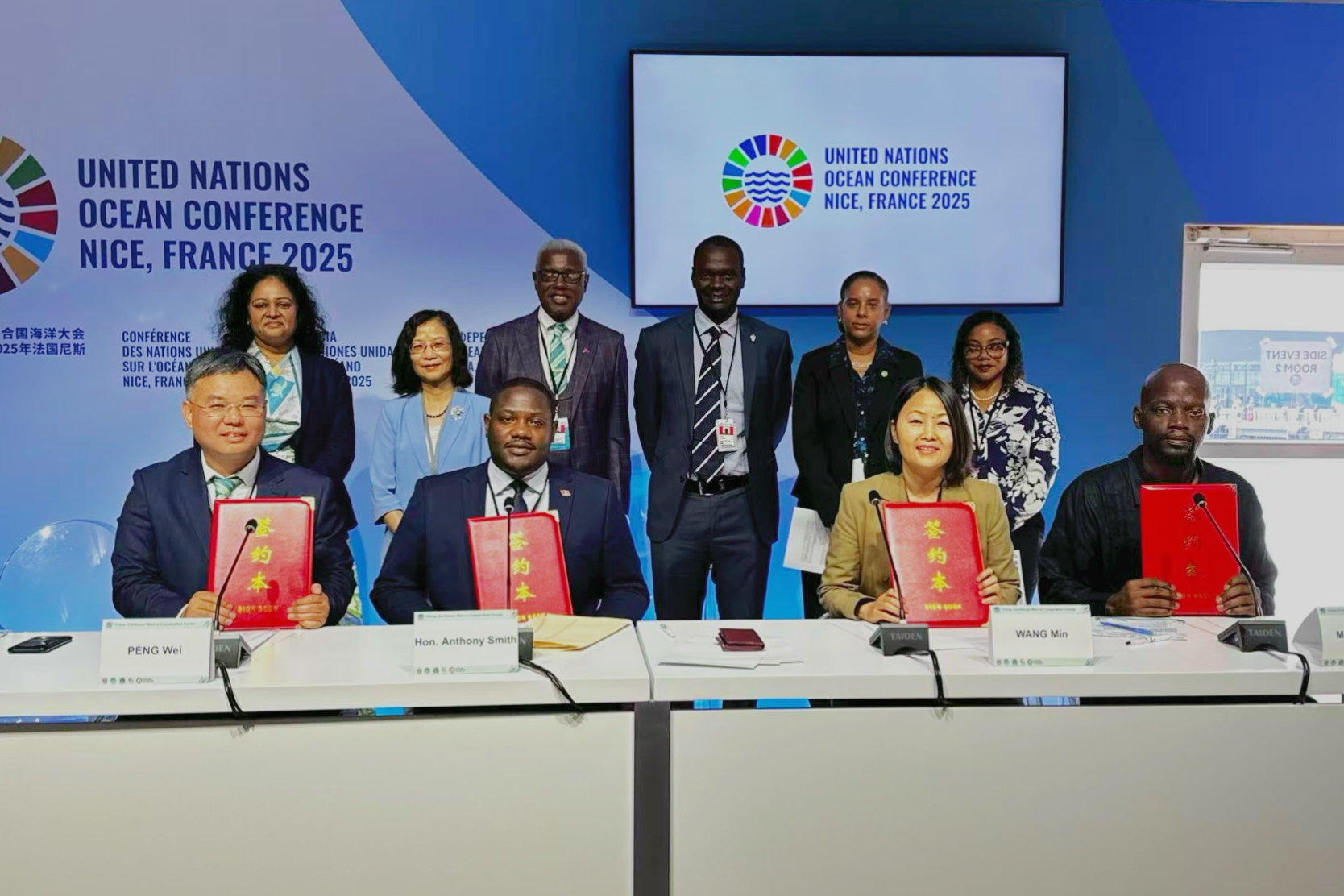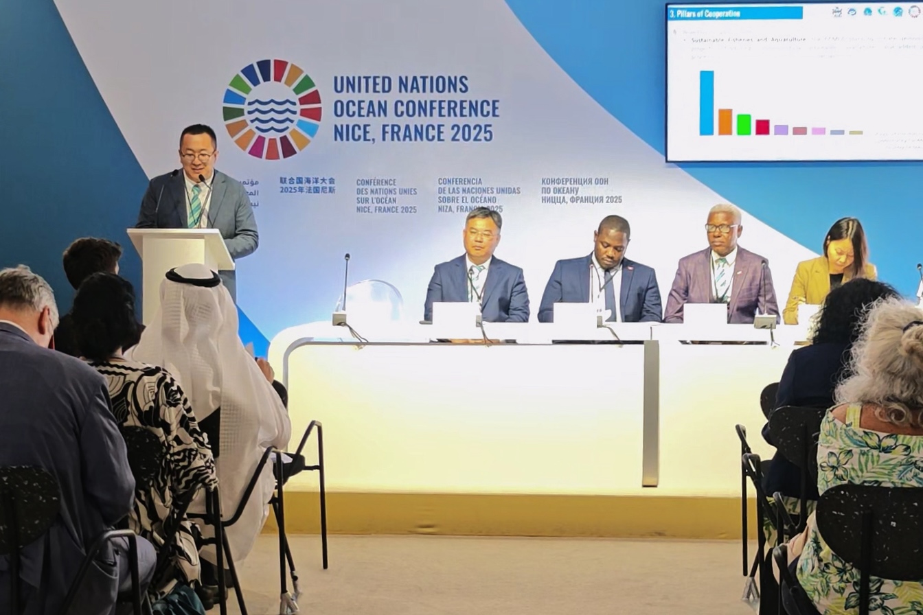 在自然资源部国际合作司(海洋权益司)司长陈丹红、安巴气候大使鲁莱塔·卡马乔·托马斯、太平洋岛国发展论坛蓝色经济主任阿帕娜·普拉塔普等见证下,中心主任彭伟与安巴蓝色经济部、加勒比区域渔业机制、中国海洋发展基金会代表共同签署了《关于联合建立中国-加勒比海洋合作中心的意向书》。海洋合作中心旨在搭建中国与加勒比国家海洋领域合作的重要桥梁和平台,有效促进知识与技术分享,倡导创新实践,助力提升加勒比国家海洋治理水平。这一合作意向充分展现了各方在海洋领域深化合作、共谋发展的共同意愿,彰显了发展中国家团结协作、共克挑战的南南合作精神,赢得了与会代表的广泛赞赏,得到了多个国家和国际组织的积极响应,并被安巴、东加勒比国家组织官方媒体报道。
