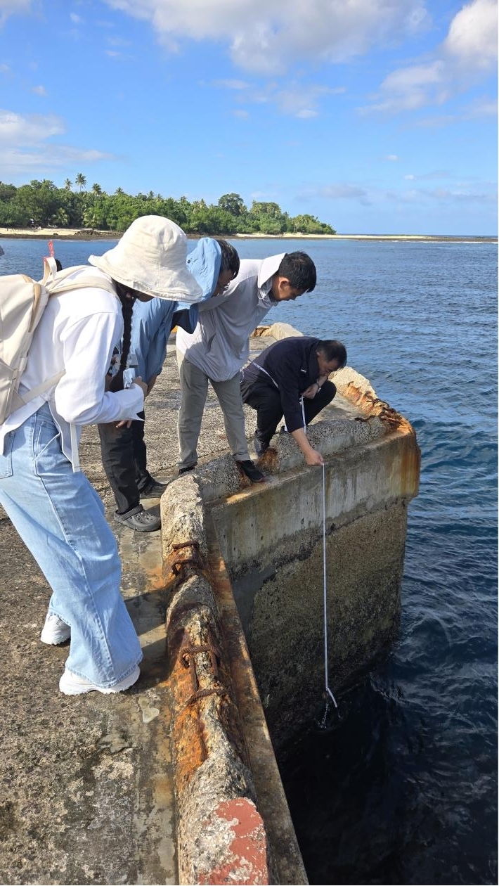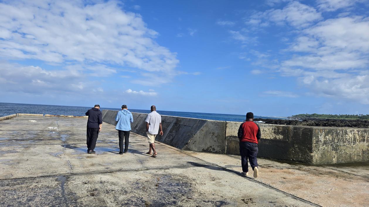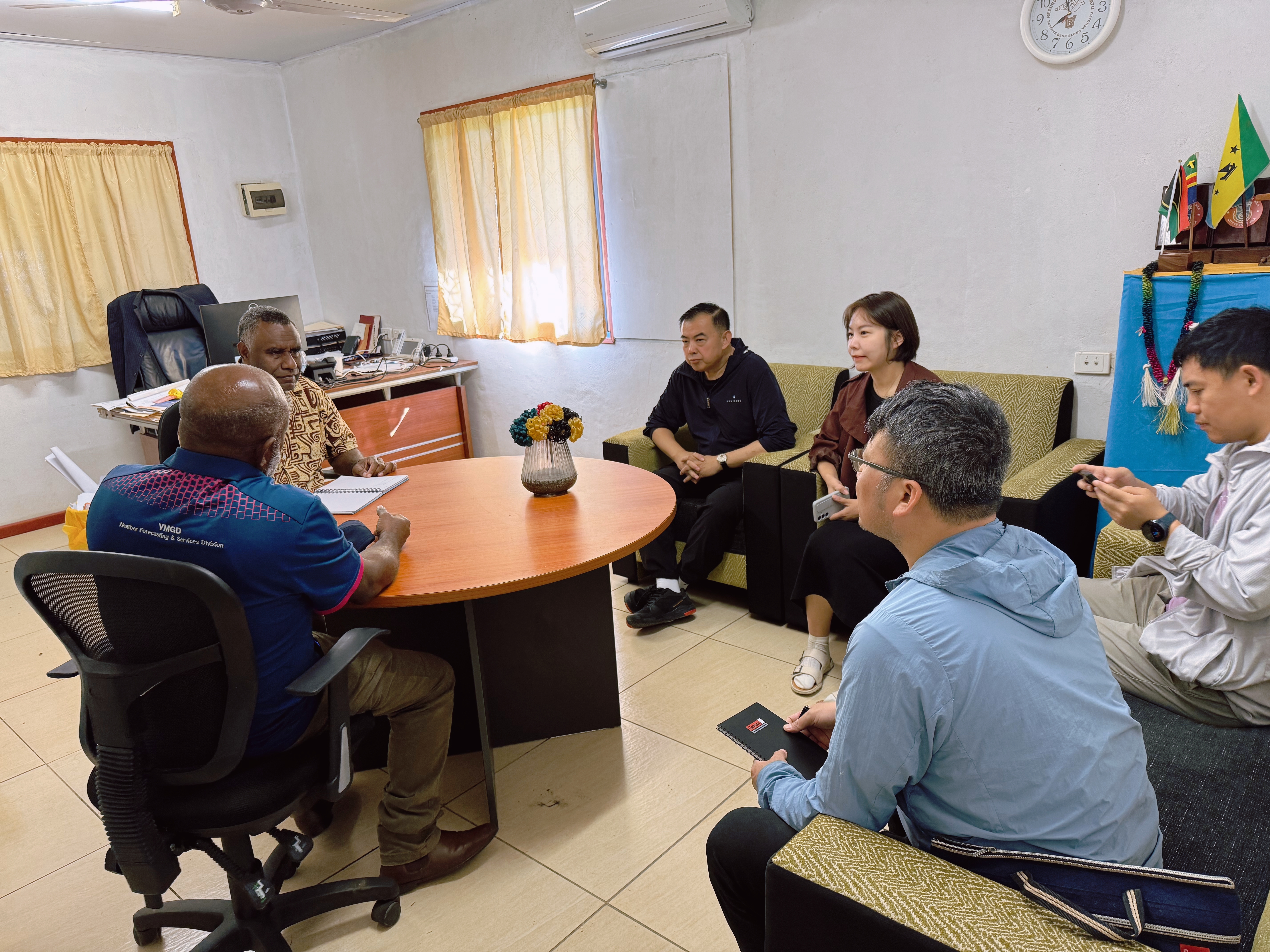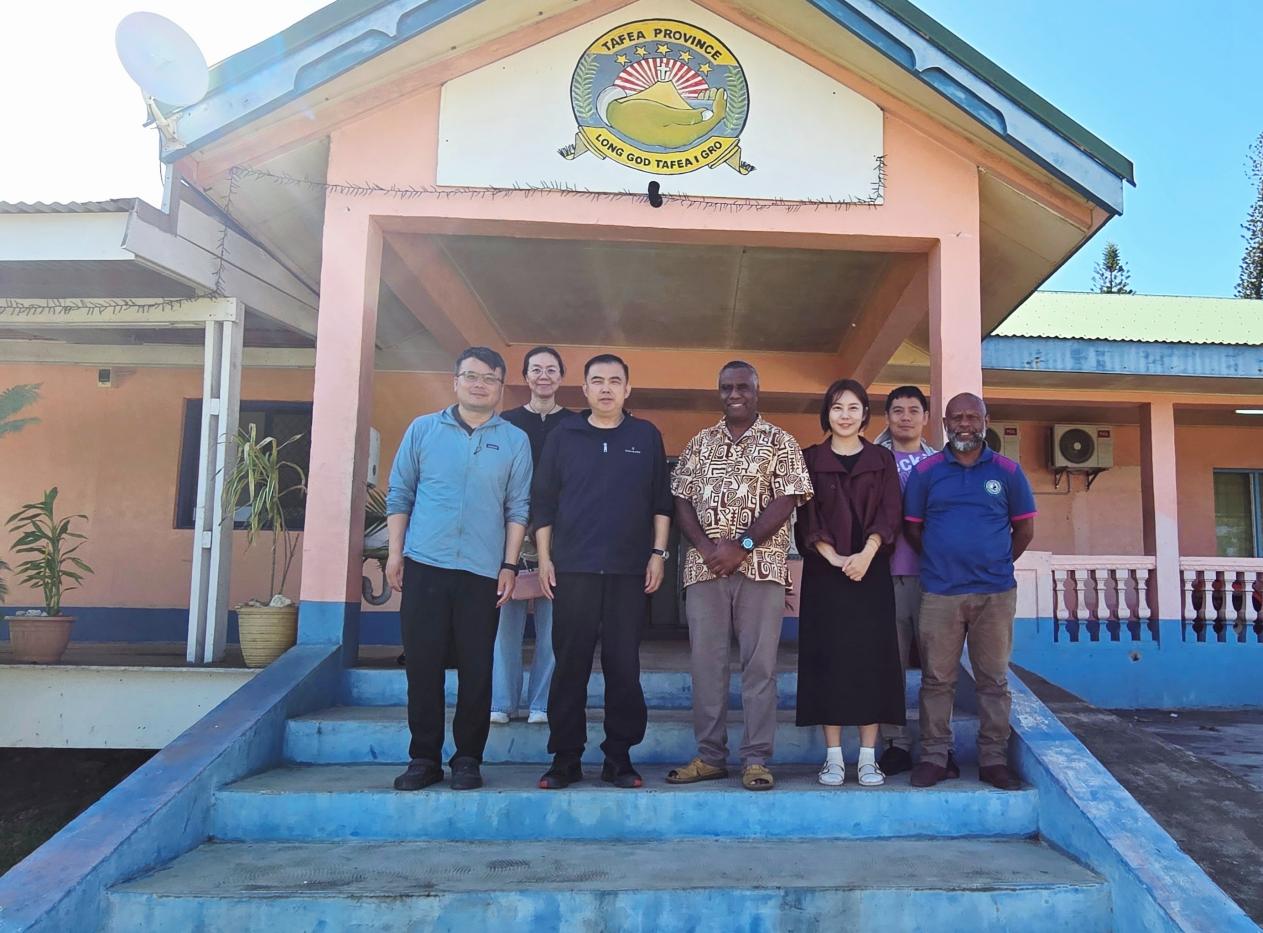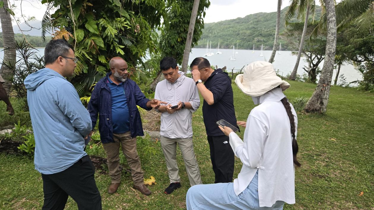 7月24日破晓,螺旋桨飞机冲破火山灰幕,降落在塔纳岛南端。国家海洋技术中心工作组从晨光初绽到星斗满天,16小时横跨岛屿东西海岸。经过实地现场水深测量、走访社区、勘察地质、供电、通信、社区条件评估,形成初步选址意向,并拜访了塔纳岛tafea省常务秘书,就瓦努阿图南北兴建海洋观测站的意向进行商讨,得到该省领导的大力支持。“南北双站是瓦国的生命线!我省将全力保障建设用地。”临别之际,新当选的省长匆匆踏入,经过我方自我介绍,他说:“听闻卢甘维尔港的观测站新落成——请让塔纳岛也装上风暴潮的守护之眼!”月光爬上窗棂,工作组的皮卡驶向夜色,卷起的红土在车尾拖出星火微光。