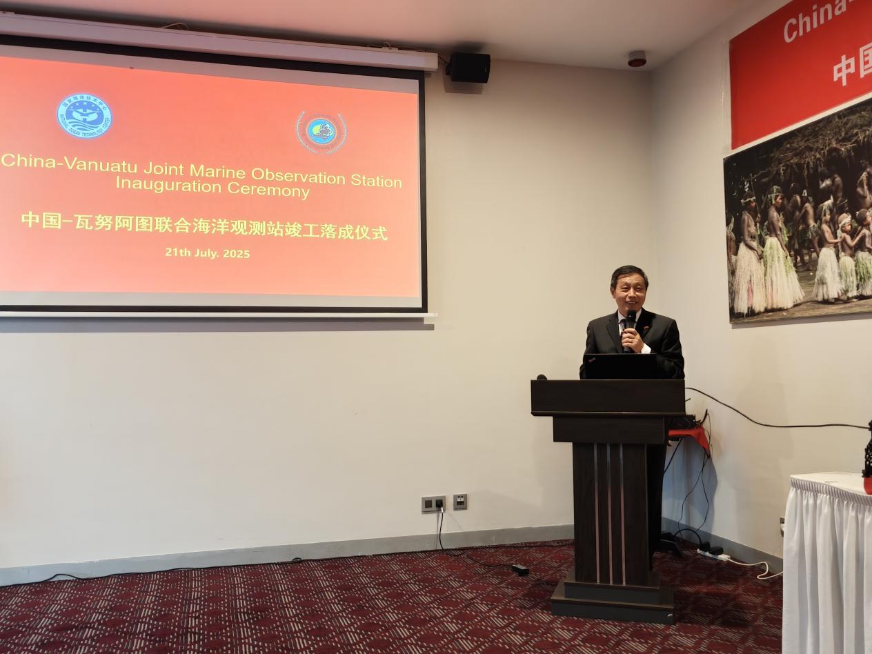 7月21日,中国驻瓦努阿图大使李名刚率使馆代表团出席海洋联合观测站的竣工落成仪式,瓦渔业海洋部长卡尔米特、气变部总司长吉布森及中瓦双方建设单位代表到场。