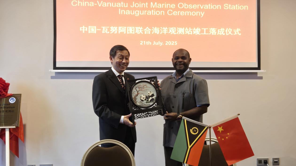 7月25日傍晚,维拉港的暮色漫过全岛。中国驻瓦努阿图大使馆会议室的灯光次第亮起,映照着风尘仆仆的身影——国家海洋技术中心工作组全员列席。隋军副主任向李名刚大使汇报了中瓦合作十年来的耕耘与收获:“十年深耕,中瓦海洋合作已从潮位仪里的正弦曲线,延伸成跨越赤道的信任纽带。”李名刚大使表示说:“这不是单向援助,而是践行人类命运共同体理念的生动注脚。”此次海洋观测站的落成,还得到了瓦努阿图政府媒体的报道。